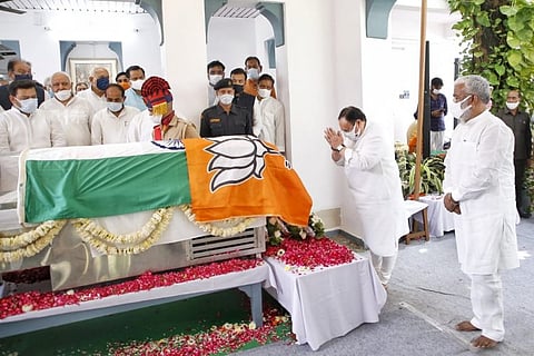உத்தரப் பிரதேச மாநில முன்னாள் முதல்வரும் பாஜக மூத்த தலைவருமான கல்யாண் சிங் நேற்று முன்தினம் காலமானார். கல்யாண் சிங் உடல் அஞ்சலிக்காக லக்னோவில் அவரது வீட்டில் வைக்கப்பட்டது. அவரது உடலுக்கு உத்தர பிரதேச முதலமைச்சர் யோகி ஆதித்யநாத், பிரதமர் மோடி உள்ளிட்ட பலர் அஞ்சலி செலுத்தினர்.