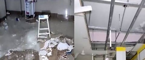 தெலங்கானா மாநிலம் மகபூபாத் மாவட்டத்தில் பெய்து வரும் தொடர் கனமழையால், அங்குள்ள அரசு மருத்துவமனையின் அவசர சிகிச்சைப்பிரிவுக் கட்டிடம் சேதமடைந்து பால் சிலிங் பெயர்ந்து விழுந்தது.