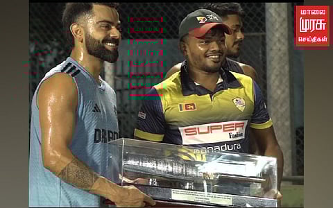 அப்போது இலங்கையின் இளம் கிரிக்கெட் வீரர்களுடன் விராட் கோலி கலந்துரையாடி கிரிக்கெட் நுணுக்கங்கள் குறித்து விளக்கமளித்துள்ளார். அப்போது ஒரு இளம் வீரர், வெள்ளியால் செய்யப்பட்ட கிரிக்கெட் மட்டையை கோலிக்கு அன்புப் பரிசாக வழங்கியுள்ளார். இதனை பிசிசிஐ தனது X பக்கத்தில் பகிர்ந்துள்ளார்.