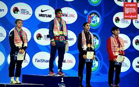 இதேபோல் 62 கிலோ எடைபிரிவில் இந்தியாவின் சவீதா தங்கப்பதக்கத்தை கைப்பற்றினார். மகளிருக்குகான 53 கிலோ எடைப்பிரிவில் ஆன்டிம் பங்கல் தங்கப்பதக்கத்தை தனதாக்கினார். 65 கிலோ எடைப்பிரிவில் ஆன்டிம் வெள்ளியும், 57 கிலோ எடைப்பிரிவில் ரீனாவும், 72 கிலோ எடைப்பிரிவில் ஹர்ஷிதாவும் வெண்கலப்பதக்கம் வென்றனர். ஒரே நாளில் இந்திய அணி மொத்தம் 7 பதக்கங்களை வென்று அசத்தியுள்ளனர். அவர்களுக்கு மத்திய விளையாட்டுத்துறை அமைச்சர் அனுராக் சிங் தாகூர் தனது டுவிட்டர் பக்கத்தில் வாழ்த்துகளை தெரிவித்துள்ளார்.