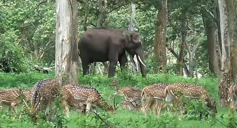வறட்சியான காலகட்டத்தில் வன விலங்குகளைக் காண்பது மிகவும் அரிது தற்போது பருவமழை பெய்து முடிந்து வனங்கள் பசுமைக்கு திரும்பியுள்ளன. இதனால் வன விலங்குகளின் நடமாட்டம் அதிகமாக காணப்படுகிறது குறிப்பாக சாலையோரங்களில் மேய்ச்சலில் ஈடுபடும் யானையுடன் கூட்டமாக காணப்படும் மான்கள் செந்நாய்கள் உள்ளிட்ட வனவிலங்குகள் கண்களுக்கு விருந்து படைக்கின்றன.