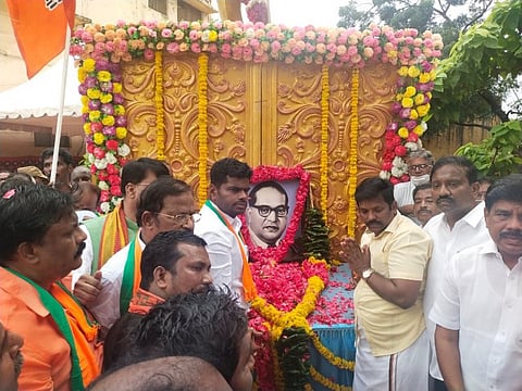 தொடர்ந்து பேசிய அவர், திருமாவளவன், பாலகிருஷ்ணன் ஆகியோரைப் போல, அம்பேத்கரை வைத்து வியாபாரம் செய்யும் கட்சி பாஜக இல்லை என்றும், சட்ட மேதை அம்பேத்கரின் கனவுகளை நிறைவேற்றும் ஒரே கட்சி பாஜக தான் என்று பாஜக மாநில தலைவர் அண்ணாமலை தெரிவித்துள்ளார்.