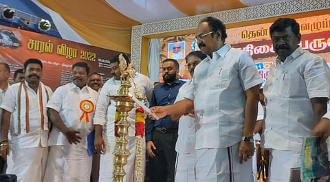 சிறப்பு விருந்தினர்களாக கலந்து கொண்ட வருவாய் மற்றும் பேரிடர் மேலாண்மை துறை அமைச்சர் கே.கே.எஸ்.எஸ்.ஆர்.ராமச்சந்திரன், தொழில்துறை அமைச்சர் தங்கம் தென்னரசு ஆகியோர் குத்துவிளக்கு ஏற்றி விழாவை தொடங்கி வைத்தனர்.