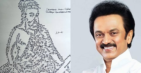 ஓவியக் கலைஞரான கணேஷ் என்பவர் திருவள்ளுவரின் மீது கொண்ட பற்றால் அவரின் உருவத்தை தமிழி எழுத்து, தமிழ் வட்டெழுத்து,தமிழ் எழுத்து என கி.பி.மூன்றாம் நூற்றாண்டில் தொடங்கி இன்றைய தமிழ் எழுத்துகள் வரை உள்ள 741 தமிழ் எழுத்துகளைக் கொண்டு ஓவியம் தீட்டியுள்ளார்.அதனை அவர் சமூக வலைதள பக்கத்தில் பதிவிட்டிருந்தார். இது குறித்து செய்தி அறிந்த முதலமைச்சர் மு.க.ஸ்டாலின் அவரது ஓவியத் திறமையைப் பாராட்டும் விதமாக “அன்பின் வழியது உயர்நிலை” என்ற அய்யன் வள்ளுவரை, தமிழ் மீது கொண்ட அன்பால் தமிழ் எழுத்துகளால் ஓவியக் காவியமாக்கிய கணேஷை எவ்வளவு பாராட்டினாலும் தகும்! வள்ளுவம் போல் இந்த ஓவியமும் வாழும்!” என தனது டுவிட்டர் பக்கத்தில் குறிப்பிட்டுள்ளார்.