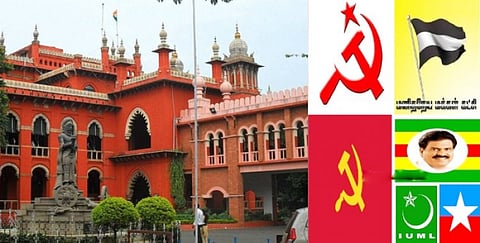 திமுக சின்னத்தில் வெற்றி பெற்ற கூட்டணி கட்சி எம்.எல்.ஏ.-க்களை எப்படி அமரவைக்க வேண்டுமென்பது சபாநாயகரின் அதிகாரத்திற்கு உட்பட்டதால், அந்த லட்சுமண ரேகையை தாண்ட முடியாது என கூறியுள்ள சென்னை உயர்நீதிமன்றம், அதுதொடர்பான வழக்கை தள்ளுபடி செய்துள்ளது.