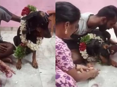 வீட்டில் பெண்களுக்கு வளைகாப்பு நடத்துவது போல சுஜி என்ற நாய்க்கு 5 விதமான உணவுப் பொருட்கள் செய்து கொடுத்து , புது சேலை மற்றும் மாலைகள் அணிவித்து நாயின் கால்களில் வளையல்கள் மாட்டி அதன் முகத்தில் சந்தனம் குங்குமம் வைத்து குடும்பத்தினருடன் சேர்ந்து வளைக்காப்பு நடத்தினார்.இந்த சம்பவம் அப்பகுதியில் உள்ளவர்களை ஆச்சரியமடைய வைத்ததுடன் விலங்குகள் ஆர்வலர்களிடம் பாராட்டுகளை பெற்று வருகிறது.