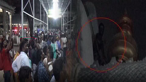 இந்நிலையில், 137 அடி ராஜகோபுரத்தின் கலசத்தின் அருகே மர்ம நபர் ஒருவர் ஏறியிருப்பது பக்தர்களுக்கு தெரியவந்துள்ளது. இதையடுத்து, பக்தர்கள் போலீசாருக்கும், தீயணைப்பு துறையிருக்கும் தகவல் கொடுத்துள்ளனர். சம்பவ இடத்திற்கு வந்த திருச்செந்தூர் தீயணைப்பு மீட்பு படையினர், கயிறு மற்றும் தார்பாய்களுடன் வந்து மீட்பு பணியில் ஈடுபட்டனர்.