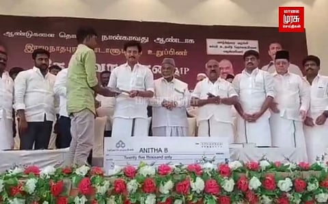 ராமநாதபுரம், திருவாடனை, பரமக்குடி, முதுகுளத்தூர், அறந்தாங்கி, திருச்சுழி ஆகிய 6 சட்டமன்ற தொகுதிக்கு உட்பட்ட மாணவர்களின் கல்வி செலவிற்காக உதவித்தொகை வழங்கும் நிகழ்ச்சி ராமநாதபுரம் நாடாளுமன்ற உறுப்பினர் நவாஸ் கனி தலைமையில் நடைபெற்றது.
