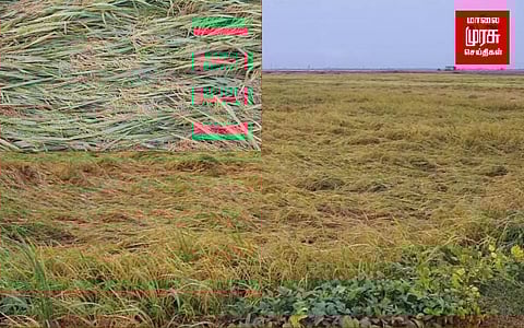 இதேபோல் நாகை மாவட்டம், வேதாரண்யம் மற்றும் அதன் சுற்றுவாட்டார பகுதியில் கனமழை பெய்து வருவதால், சுமார் 10 ஆயிரம் ஏக்கர் சம்பா நெற்பயிர்கள் தண்ணீரில் சாய்ந்து சேதமடைந்துள்ளது. இதனால் விவசாயிகள் கவலையடைந்துள்ளனர்.