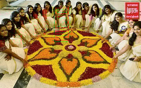 இதனை முன்னிட்டு பல்வேறு கல்லூாிகளில் மாணவிகள் பூக்கோலமிட்டு உற்சாக நடனமாடி மகிழ்ந்தனா். அதன் ஒருபகுதியாக திருப்பூா் மாவட்டம் தாராபுரத்தில் உள்ள தனியார் கலை மற்றும் அறிவியல் கல்லூரியில் பயிலும் மாணவிகள் கேரள மாநில பாரம்பாிய உடை அணிந்த வந்து, கல்லூாி வளாகத்தில் பிரமாண்டமாக பூக்கோலமிட்டனா். பின்னா் அனைவரும் உற்சாகமாக கேரள நடனமாடி பண்டிகையை கொண்டாடினா்.