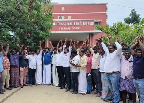 பணம் கேட்டு தராததால் வியாபாரியை தாக்கிய கஞ்சா போதை ஆசாமிகளை, கைது செய்யக்கோரி நாடார் சங்கம் மற்றும் வணிகர் சங்கத்தினர் பள்ளிக்கரணை காவல் நிலையத்தை முற்றுகையிட்டு போராட்டத்தில் ஈடுபட்டனர்.