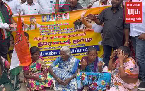 பாஜக பட்டியலினத்தவர் மற்றும் பழங்குடி மக்களை ஒதுக்கி வைப்பதாக கூறி காங்கிரஸ் கட்சியினர் ஒப்பாரி வைத்து போராட்டத்தில் ஈடுபட்டுள்ளனர்.