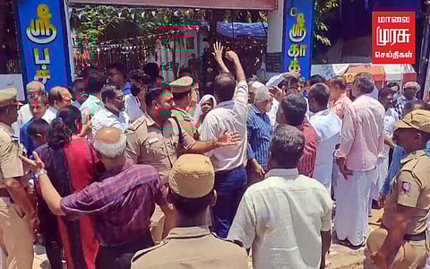 அவர்களை போலீசார் சந்திக்க விடாமல் ஆட்சியர் அலுவலகத்திற்கு எதிரே உள்ள கோவில் வளாகத்தில் வைத்து அடைத்துள்ளனர் இதனால் பரப்பரப்பு நிலவியது மேலும் பாதிக்கப்பட்டவர்களிடமிருந்து ஐந்து நபர்கள் முதலமைச்சரின் நேர்முக உதவியாளரிடம் மனு அளித்தனர் அதை தொடர்ந்து பாதிக்கப்பட்டவர்கள் அங்கிருந்து கலந்து சென்றனர் இதனால் அப்பகுதியில் பெரும் பரபரப்பு நிலவியது