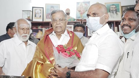 மணிப்பூர் மாநிலத்தின் புதிய ஆளுநராக நியமிக்கபட்டுள்ள இல.கணேசனை சென்னை தி.நகரில் உள்ள அவரது இல்லத்தில் மத்திய இணை அமைச்சர் எல்.முருகன் நேரில் சந்தித்து இனிப்பு வழங்கி வாழ்த்து தெரிவித்தார்.