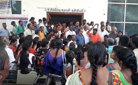 மதுரை மாவட்டம் உசிலம்பட்டி ஊராட்சி ஒன்றியத்தில் கணக்காளராக பணியாற்றும் கருப்பையா என்ற அரசு ஊழியரை, கே.போத்தம்பட்டி ஊராட்சி மன்ற தலைவர் உக்கிரபாண்டி என்பவர் தாக்கிய சம்பவம் தொடர்பாக உக்கிரபாண்டி உட்பட 7 பேர் மீது 9 பிரிவுகளின் கீழ் வழக்கு பதிவு செய்யப்பட்டுள்ளது.