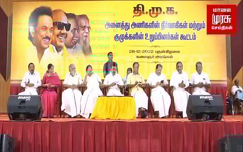 முதலமைச்சர் மு க ஸ்டாலின் தலைமையில் திமுகவில் உள்ள அனைத்து அணிகளின் நிர்வாகிகள் ஆலோசனைக் கூட்டம் நடைபெற்றது.