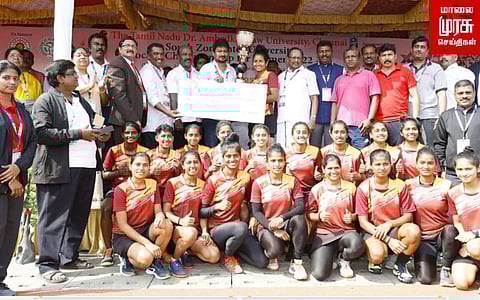 தமிழ்நாடு டாக்டர் அம்பேத்கர் சட்டப் பல்கலைக்கழகம் சார்பில் கடந்த 26ஆம் தேதி முதல் நடைபெற்ற ஹாக்கி போட்டியில் தமிழ்நாடு, கேரளா, கர்நாடகா, ஆந்திர பிரதேசம், தெலுங்கானா மாநிலங்கள் மற்றும் புதுச்சேரியை சேர்ந்த 26 பல்கலைக்கழக அணிகள் பங்கேற்றன.