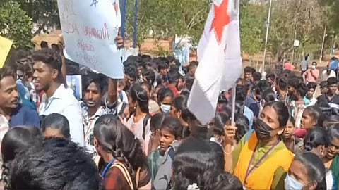 இதேபோல் தஞ்சை நாகை திருவாரூர் , உள்ளிட்ட மாவட்டங்களில் உள்ள அரசுகலைக்கல்லூரி மாணவ மாணவியர்கள் வகுப்புகளை புறக்கணித்து அரசுக்கு எதிராக முழக்கங்களை எழுப்பி போராட்டத்தில் ஈடுபட்டனர்.. தேர்வு கட்டணத்தை உடனடியாக திரும்ப பெற வேண்டும் என அப்போது வலியுறுத்தப்பட்டது.