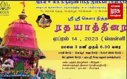 நாட்டின் ஒவ்வொரு கிராமத்திலும், நகரத்திலும், கிருஷ்ண பரமாத்மாவின் மகிமைகளை பரப்ப, அகில உலக கிருஷ்ண பக்தி இயக்கம் என்ற இஸ்கான் அமைப்பு 2015 ல் உருவாக்கப்பட்டது. மேலும் இந்த அமைப்பை உருவாக்கிய இஸ்கானின் ஸ்தாபக ஆச்சாரியா ஸ்ரீல பிரபு பாதருக்கு அர்ப்பணிக்கும் விதமாக ஒவ்வொரு ஆண்டும் ஏப்ரல் 14-ஆம் தேதி இஸ்கான் வடசென்னை சார்பில் ரத யாத்திரை நடைபெறுவது வழக்கம். அதன் ஒரு பகுதியாக இந்த ஆண்டு ஒன்பதாவது வருட ஸ்ரீ கௌர நிதாய் ரத யாத்திரை விழா நடைபெற்றது.