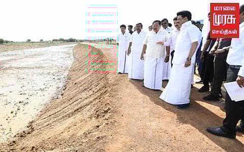 பின்னர் விண்ணமங்கலம் வாய்க்காலில் மேற்கொள்ளப்பட்டு வரும் துர்வாரும் பணிகளையும் பார்வையிட்டு ஆய்வு செய்த முதலமைச்சர் தூர்வாரும் பணிகளை விரைந்து முடிக்க அறிவுறுத்தினார்.