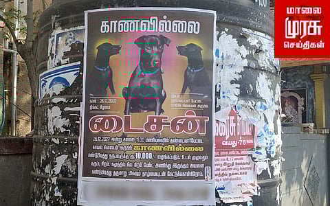 வளர்ப்பு நாயை காணாமல் போனதால் கண்டுபிடிக்க ஒட்டப்பட்ட போஸ்டர் வைரலாகி வருகிறது.