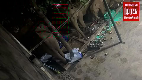 கோவை மாவட்டத்தில் மேற்கு தொடர்ச்சி மலை அடிவாரத்தில் அமைந்துள்ள மேட்டுப்பாளையம் வனப்பகுதியில் காட்டு யானைகள், மான், புலி, சிறுத்தை, கரடி, காட்டெருமை உள்ளிட்ட ஏராளமான வன உயிரினங்கள் வாழ்ந்து வருகின்றன. மேட்டுப்பாளையம் வனப்பகுதி யானைகளின் வலசைப் பாதை என்பதால் காட்டு யானைகளின் எண்ணிக்கை அதிகம். கடந்த இரு மாத காலத்திற்கும் மேலாக இக்காட்டு பகுதியில் மழை இல்லாத காரணத்தினாலும் தற்போது கோடை காலம் துவங்கி உள்ளதாலும் காட்டினுள் தண்ணீர் கிடைக்காததனால் வனவிலங்குகள் காட்டை விட்டு வெளியே வந்து உணவுகளை தேடி வருகிறது. இந்த நிலையில் மேட்டுப்பாளையம் அடுத்த பர்லியார் பகுதியில் உள்ள பள்ளிவாசலுக்குள் இரவு நேரத்தில் நுழைந்த காட்டு யானைகள் அங்குள்ள பொருட்களை சேதம் செய்து உணவு பொருட்களை சாப்பிட்டுவிட்டு சென்ற வீடியோ தற்போது சமூக வலைத்தளங்களில் வைரலாக பரவி வருகிறது.