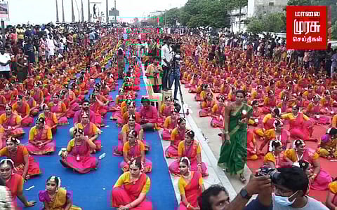 9 ஆம் நூற்றாண்டின் பாரம்பரிய இசைக்கருவியான உடுக்கையை இசைத்துக்கொண்டே பரத நாட்டியம் ஆடும் கலையை உலக அளவில் அங்கீகரிக்க வேண்டும் என்ற நோக்கில் புதுச்சேரி அரசு சுற்றுலாத்துறை மற்றும் சங்கமம் குளோபல் அகாடமி சார்பில் உலக சாதனை படைக்கும் நிகழ்ச்சி கடற்கரை சாலையில் நடைபெற்றது. இந்நிகழ்ச்சியை முதலமைச்சர் ரங்கசாமி மற்றும் சுற்றுலாத்துறை அமைச்சர் ஆகியோர் தொடங்கி வைத்தனர்.