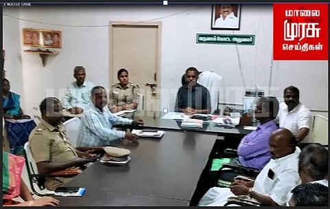 இந்த நிலையில் அந்த கிராமத்தில் உள்ள கோயிலில் பட்டியலின மக்களுக்கு வழிபாடு உரிமை மறுக்கப்பட்ட விவகாரம், அதேபோல் அங்குள்ள டீக்கடையில் இரட்டை குவளை முறை பயன்படுத்தபட்ட சம்பவம் இவை குறித்து விசாரித்து தீர்வு காண்பதற்காக அந்த கிராமத்தில் வசிக்கும் பட்டியலின சமூக மக்கள் உள்ளிட்ட மூன்று சமூக மக்கள் பிரதிநிதிகளுடனான சமாதான பேச்சுவார்த்தை இலுப்பூர் கோட்டாட்சியர் அலுவலகத்தில் கோட்டாட்சியர் குழந்தைசாமி தலைமையில் நடைபெற்றது.