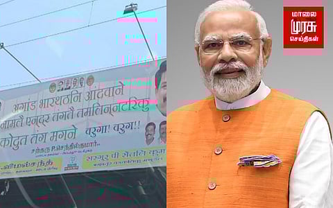 பிரதமர் வருகையை ஒட்டி பாஜகவினர் இந்தியில் பேனர் வைத்துள்ளனர். அதேநேரத்தில் பிரதமர் மோடி சென்னை வருவதாக தமிழில் டிவீட் செய்துள்ளார்.