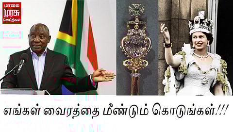 மறைந்த மகாராணி இரண்டாம் எலிசபெத்தின் கிரீடத்தில் இருக்கும், உலகின் மிகப்பெரிய சுத்தமாக வெட்டப்பட்ட வைரம் தங்களுக்கு மீண்டும் வேண்டும் என தென்னாப்ரிக்கா கோரிக்கை வைத்துள்ளது. தங்கள் நாடு வறுமையில் வாடும் போது அந்த வைரம் தங்களுக்கு நம்பிக்கை தருவதாகவும் கூறியுள்ளது.