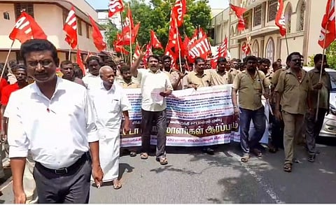 அமைப்பு சாரா சங்கத்தில் உறுப்பினர்களாக உள்ளவர்களுக்கு தீபாவளி உதவி தொகையை ரூபாய் 5 ஆயிரமாக உயர்த்தி வழங்கிட வேண்டும் உள்ளிட்ட பல்வேறு கோரிக்கைகளை வலியுறுத்தி 100 க்கும் மேற்பட்டோர் மிஷின் வீதியில் இருந்து ஊர்வலமாக வந்து சட்டபேரவை அருகே ஆர்ப்பாட்டத்தில் ஈடுப்பட்டனர், இந்த ஆர்ப்பாட்டத்தின் போது தங்களின் கோரிக்கைகளை அரசு உடனடியாக நிறைவேற்றிட வலியுறுத்தி கண்டன கோஷங்களை எழுப்பினர்.