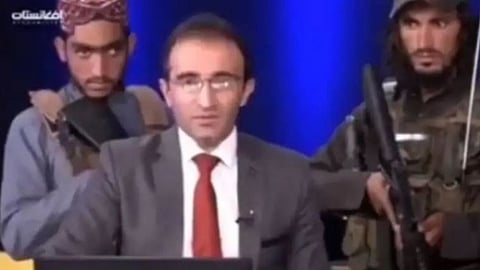 ஆப்கானிஸ்தானில் பிரபல டோலோ சேனலில் செய்தி வாசித்துக் கொண்டிருந்த போது தாலிபன்கள் துப்பாக்கிகளுடன் ஸ்டூடியோவுக்கு நுழைந்து போஸ் கொடுத்த சம்பவம் நிகழ்ந்துள்ளது.