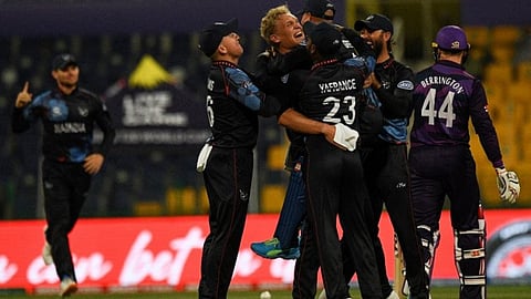 110 ரன்கள் எடுத்தால் வெற்றி என்ற எளிய இலக்குடன் நமீபியா அணி களம் இறங்கியது. சீரான இடைவெளியில் அடுத்தடுத்து விக்கெட்டுகளை இழந்ததால், நமீபியா அணியும் ரன்கள் எடுக்க சற்று தடுமாறியது. இருப்பினும், மறுமுனையில் அபார ஆட்டத்தை வெளிப்படுத்தி ரன் குவித்த ஜே.ஜே.ஸ்மித், இறுதி நேரத்தில் நிலைத்து நின்று ஆடினார். கடைசி ஓவரில் ஒரு ரன் தேவை என்ற நிலையில், ஸ்மித் முதல் பந்தில் சிக்சர் அடித்து வெற்றியை உறுதி செய்தார். 19 புள்ளி 1 ஓவர்களில் நமீபியா அணி, 6 விக்கெட்டுகளை இழந்து 115 ரன்கள் எடுத்து வெற்றி பெற்றது.