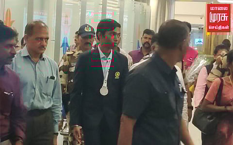 செஸ் உலகக்கோப்பை போட்டியில் வெள்ளி வென்று தாயகம் திரும்பிய தமிழ்நாடு வீரர் பிரக்ஞானந்தாவுக்கு சென்னை விமான நிலையத்தில் உற்சாக வரவேற்பு அளிக்கப்பட்டது.